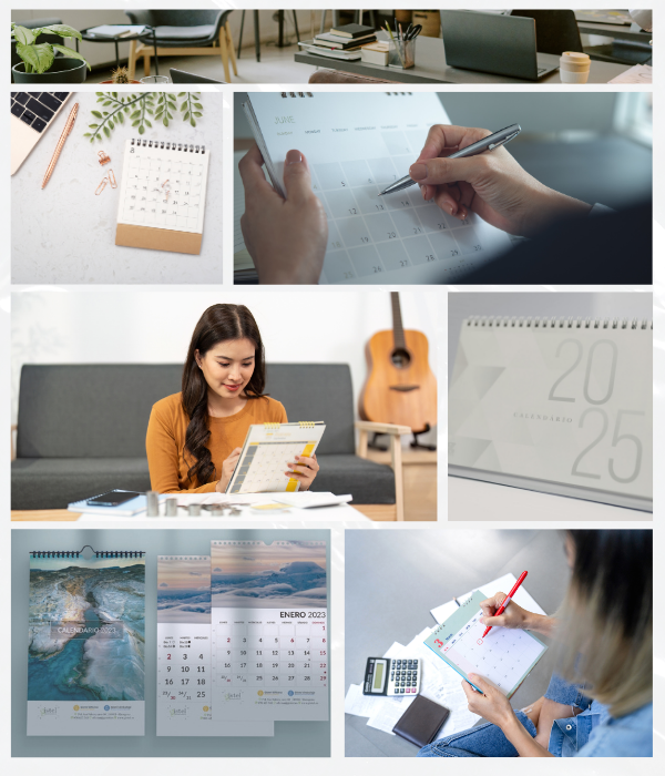 Calendarios de sobremesa y pared, con opciones publicitarias, impresos con calidad profesional para empresas que quieren destacar todo el año.